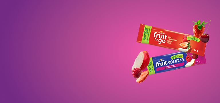 Chez SunRype, nous restons toujours fidèles à nos racines. Nous fabriquons nos collations aux fruits comme vous vous y attendez, avec des fruits et des arômes naturels. Nous ne tournons pas autour du pot ; nous utilisons de véritables purées et jus de fruits pour créer le genre de collations que toute la famille appréciera. Nous procédons ainsi parce que nous aimons les fruits, et nous savons que vous les aimez aussi.